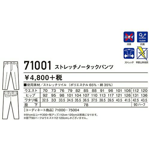 他の画像を見る アイトス AZ-60620 ワークパンツ ノータック AITOZ 作業服 作業着 腿ポケット無 ボトムス 秋冬 通年 スラックス 作業ズボン 作業パンツ ワークパンツ ズボン おしゃれ かっこいい オフィス ユニホーム アジト AZITO メンズ レディース 男女兼用 特別価格 ¥ 4,260 税込 〜 特別価格 ¥ 税込 ストレッチ素材を採用。細身シルエットでも動きやすい。 詳細を見る お気に入りに登録する