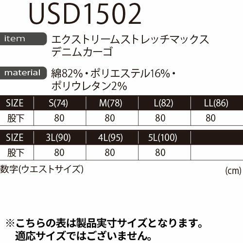 作業服 カーゴパンツ イーブンリバー EVENRIVER エクストリームストレッチマックスデニムカーゴ USD1502 作業着 通年 秋冬作業着 作業服 カーゴパンツ
