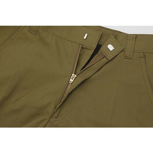 根強い人気のストレッチワークウェア 伸縮性のあるストレッチサージに、防汚加工や撥水撥油加工、火熱に強い難溶融加工など多様な機能性を併せ持つ高機能ワークウェア。動きやすいプリーツロンを採用した初期モデルで、その効果を広めた功労者的存在であり、今も根強い人気を誇っています。