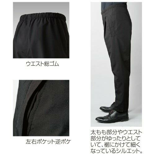 ・上下左右の4方向に自在に伸縮する4WAYパワー・ストレッチクロスを用いストレスフリーな着用感を追求・マットな質感に吸水速乾加工をブレンドしつつ、軽量なので軽やかな着用感を約束・スポーティなルックスを印象付ける細身なテーパードシルエット仕様・優れた帯電防止性を備えるJIS T8118適合プロダクト・男女ユニセックスの着用に対応する汎用性のあるサイズ&シルエット