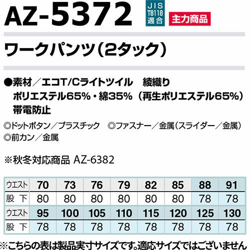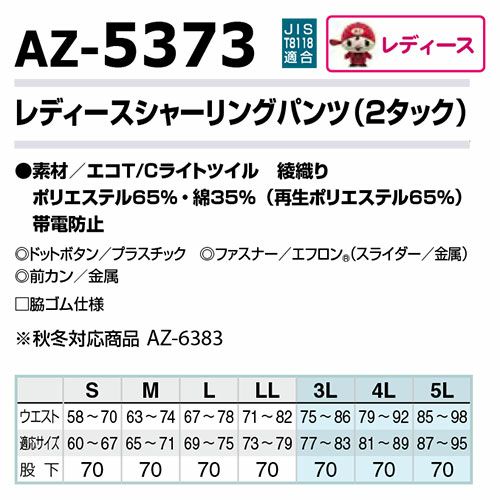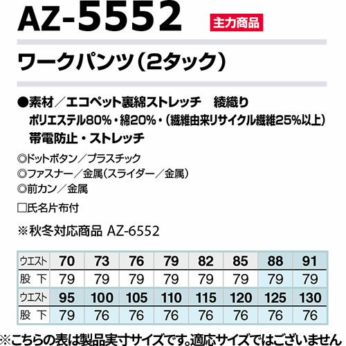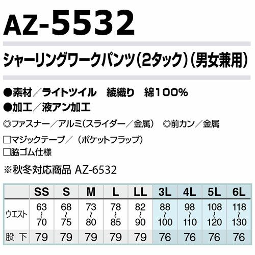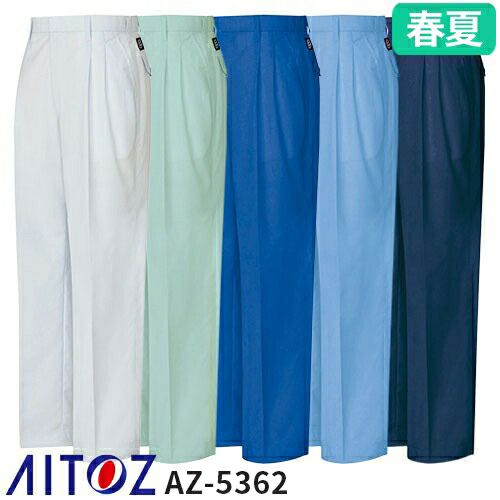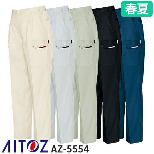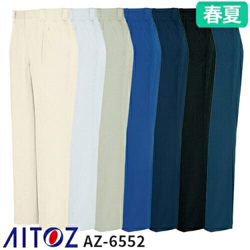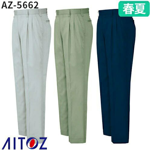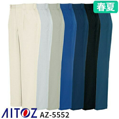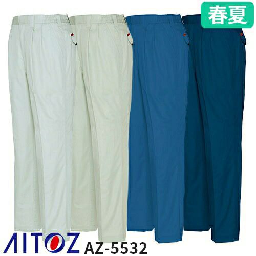 アイトス AZ-5532 シャーリングワークパンツ(2タック ツータック) AITOZ 作業服 作業着 腿ポケット無 スラックス パンツ ズボン メンズ レディース 男女兼用 春夏 ワークパンツ 吸汗 縮みにくい 形態安定