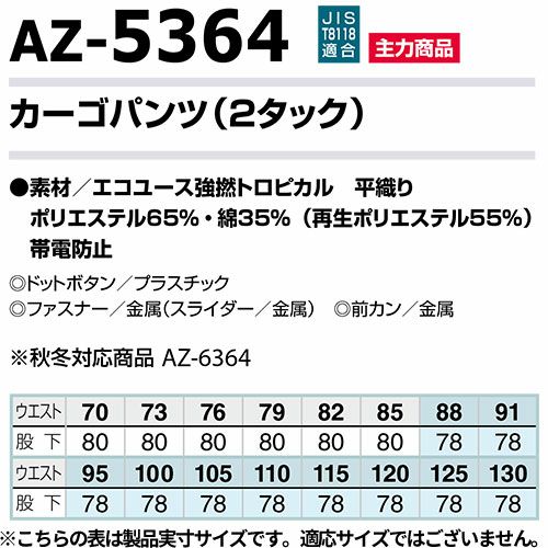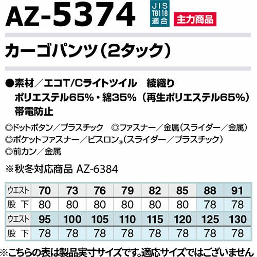 アイトス AZ-6384 カーゴパンツ(2タック ツータック) AITOZ 作業服 作業着 ポケット付き ボトムス 秋冬 通年 カーゴパンツ おしゃれ かっこいい 人気 ズボン 作業ズボン 作業パンツ 作業 工事 土木 塗装 DIY メンズ レディース 男女兼用 帯電防止