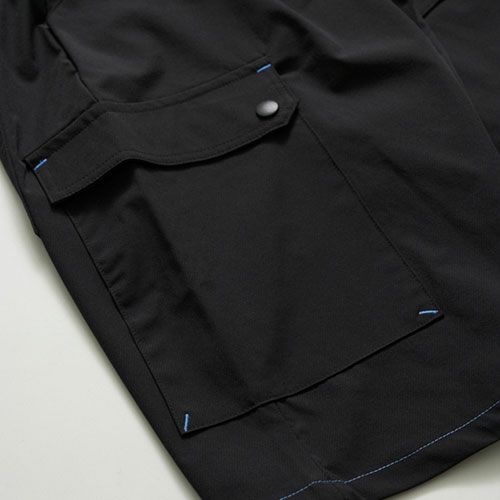 帯電防止JIS T8118適合のT/Cストレッチカーゴパンツ!スタイリッシュなシルエットとストレスフリーを実現機能性も十分な納得のクオリティ 伝統的な機能性を進化させつつ、シルエットにもこだわったT/Cストレッチシリーズ静電気対策が必要な現場でも着用できるように帯電防止JIS T8118に適合しています。ストレッチ生地をベースに、ジャケット背面にはノーフォークを、肘膝にはタックやダーツを備えることで動きやすさを向上させています。収納力についても定番のポケットの他に、ジャケットでは左胸スラッシュポケット、パンツでは右脇にファスナーポケットを備えています。また、ジャケット・パンツ共に背面に反射パイピングを施し暗所での安全性も確保しています。
