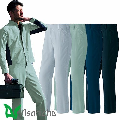 作業服 パンツ スラックス Asahicho 旭蝶繊維 パンツ(ノータック) 881 作業着 通年 秋冬 JIS T8118 帯電防止 ストレッチ 傷つけ防止 制服 会社 企業 工場 倉庫 配送 運送 建築 建設 土木 工事