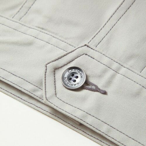 スタイリッシュで動きやすい。フルハーネスにも対応した現場服! ストレッチキャンバス素材にオイルコーディング、さらにバイオウォッシュを施した独特の質感が新しい現場服。フルハーネスをしたままでも使えるポケットやモノの落下を防止するファスナーポケットを装備。