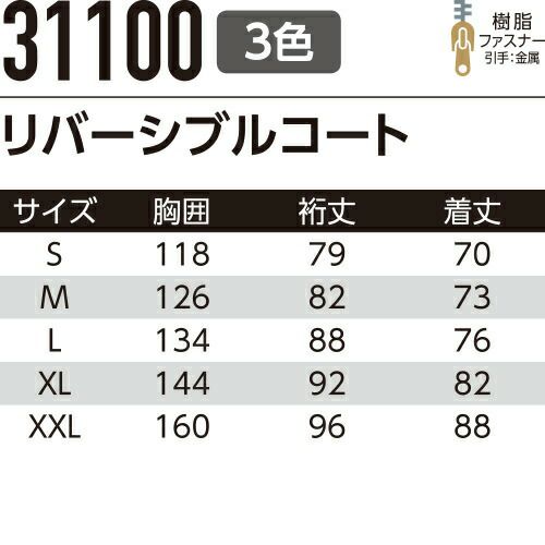 作業服 ジャンパー Asahicho 旭蝶繊維 リバーシブルコート 31100 作業着 通年 秋冬作業着 作業服 ジャンパー 長袖 おしゃれ かっこいい 企業 法人 ワーク 作業 ワークユニフォーム ワークウェア 長袖ブルゾン ユニフォーム