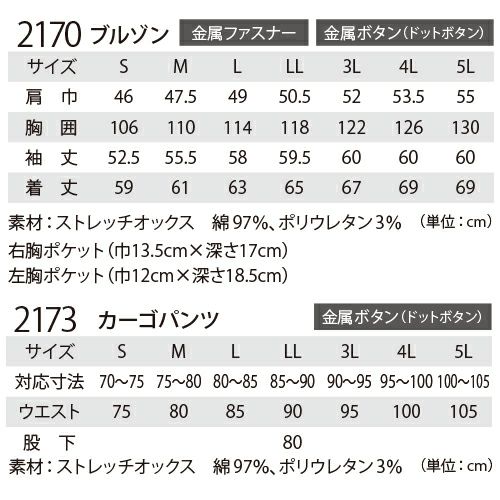 大人気ZIP現場服 ストレッチブルゾン(2170)&ZIP現場服 ストレッチカーゴパンツ(2173)のお得な上下セット!!