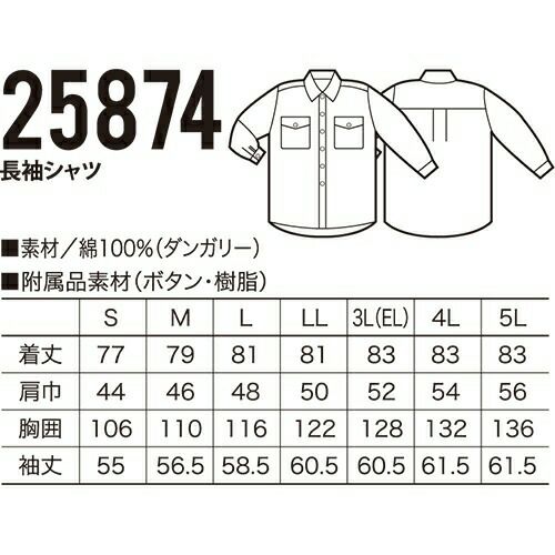 6. クロダルマ 25874 長袖シャツ タンガリー 作業着 長袖 ワークウエア KURODARUMA ワークウェア 作業服(秋冬・通年) シャツ(長袖) ワークシャツ 作業服 ワーク