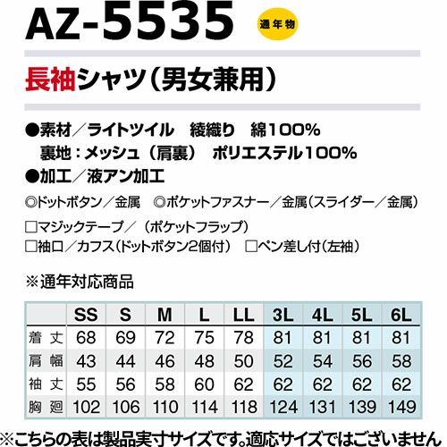 アイトス AZ-30535 長袖シャツ(男女兼用) AITOZ 作業服 作業着 長袖 ワークウエア ボタンダウン シャツ ワークシャツ 秋冬 メンズ レディース 男女兼用 ワークウェア 帯電防止 ストレッチ
