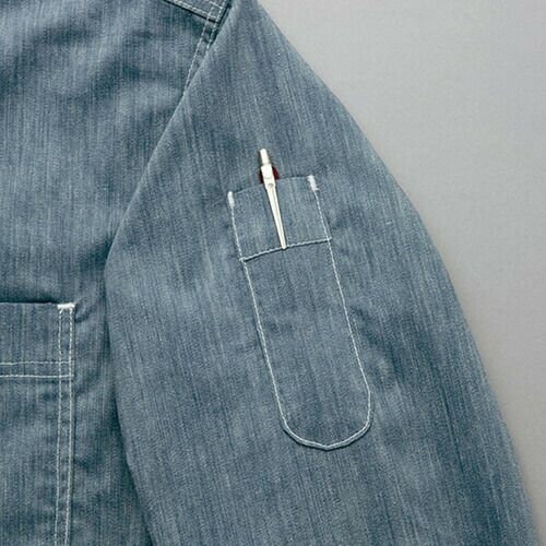 馴染み良い風合いと、こだわりの左袖ペン差しも仕事服としての魅力のひとつ