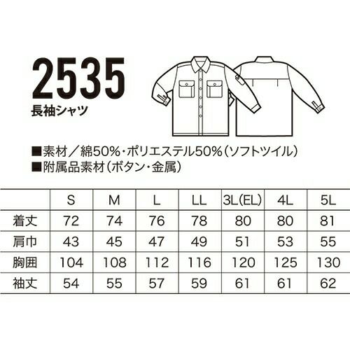 クロダルマ 2535 長袖シャツ VP 作業着 長袖 ワークウエア KURODARUMA ワークウェア 作業服(春夏) シャツ(長袖) ワークシャツ 作業服 Work