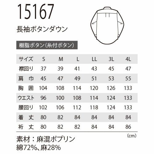 作業服 長袖シャツ ジーベック XEBEC ボタンダウン長袖シャツ 15167 作業着 春夏作業着 作業服 長袖シャツ 春夏