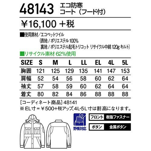 自重堂 コート(フード付) 防寒コート 防寒ジャケット 保温 人気 安い 最強 アウター ブルゾン ドカジャン 防寒ジャンパー ダウン 上着 防寒着 おしゃれ 暖かい 秋冬 かっこいい 作業着 ワーク マン メンズ 極寒 寒冷地 釣り キャンプ 登山 アウトドア 48163