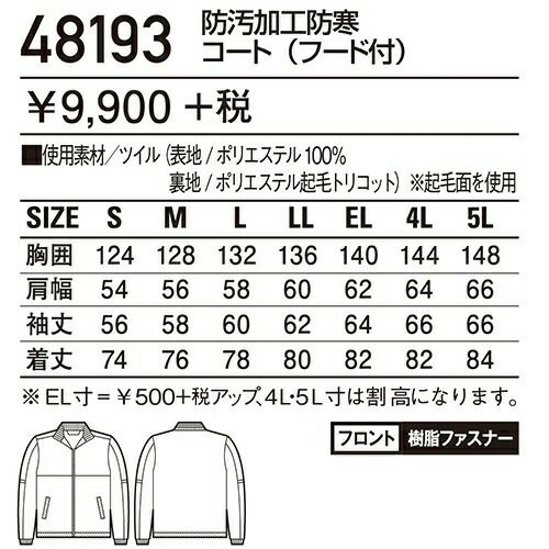 自重堂 コート(フード付) 防寒コート 防寒ジャケット 保温 人気 安い 最強 アウター ブルゾン ドカジャン 防寒ジャンパー ダウン 上着 防寒着 おしゃれ 暖かい 秋冬 かっこいい 作業着 ワーク マン メンズ 極寒 寒冷地 釣り キャンプ 登山 アウトドア 48193