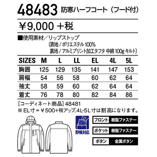自重堂 ハーフコート(フー 防寒コート 防寒ジャケット 保温 人気 安い 最強 アウター ブルゾン ドカジャン 防寒ジャンパー ダウン 上着 防寒着 おしゃれ 暖かい 秋冬 かっこいい 作業着 ワーク マン メンズ 極寒 寒冷地 釣り キャンプ 登山 アウトドア 48483