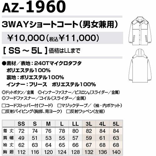 AITOZ アイトス 3WAYショートコート 男女兼用 防寒コート 防寒ジャケット アウター ブルゾン ドカジャン ジャンパー ダウン 上着 防寒着 おしゃれ 暖かい 秋冬 かっこいい 作業着 メンズ レディース 極寒 寒冷地 釣り キャンプ 登山 アウトドア