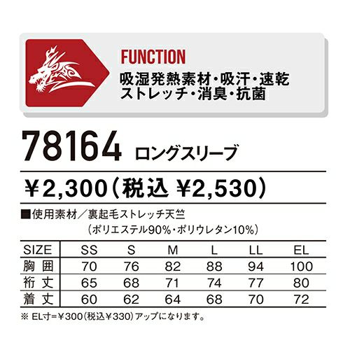 他の画像を見る 自重堂 Z-DRAGON ロングスリーブ 防寒インナー コンプレッション アンダーウェア 保温 人気 安い 防寒着 おしゃれ 暖かい 秋冬用 最強 かっこいい 作業着 おすすめ ワーク マン メンズ 極寒 寒冷地 キャンプ 釣り 登山 アウトドア 防寒 78164 特別価格 ¥ 1,309 税込 吸湿発熱加工素材を使っているので寒い冬に最適! 吸汗速乾機能に消臭・抗菌効果まで持ち合わせた、右袖・背中のシルバープリントがかっこよく際立つハイパフォーマンスインナー 詳細を見る お気に入りに登録する