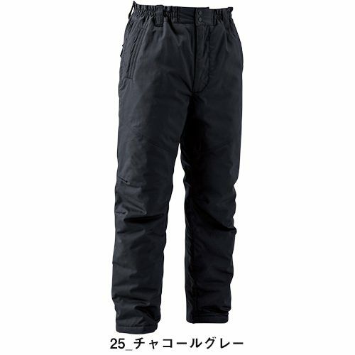 保温性抜群のオールキルトヤッケパンツです ・ウエストゴムでゆったり履きやすい!・後ろ右部分にホコリを防ぐフラップ付のポケット・防風・撥水加工で冷たい風や寒さから体をガード!