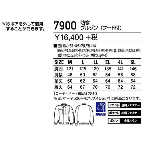 自重堂 ブルゾンフード付 防寒ジャケット ドカジャン 保温 人気 安い ダウン 防寒着 防寒ジャンパー 上着 ブルゾン 最強 アウター おしゃれ 暖かい 秋冬 かっこいい 作業着 ワーク マン メンズ 寒さ対策 屋内作業 屋外作業 あったか 防寒グッズ 7900