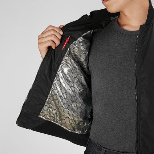アルミプリントで体温を反射、温かさを持続! アジト 軽量ストレッチシリーズ(AZ-2901)とのコーディネート可能。
