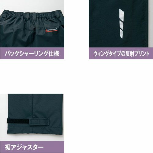 アルミメタシートで最強の保温効果。 魔法瓶効果で、熱をウエアの外に逃さない軽くて温かい「アルミメタシート」を採用。 優れた撥水・撥油性を発揮する高性能な防寒ウエア。