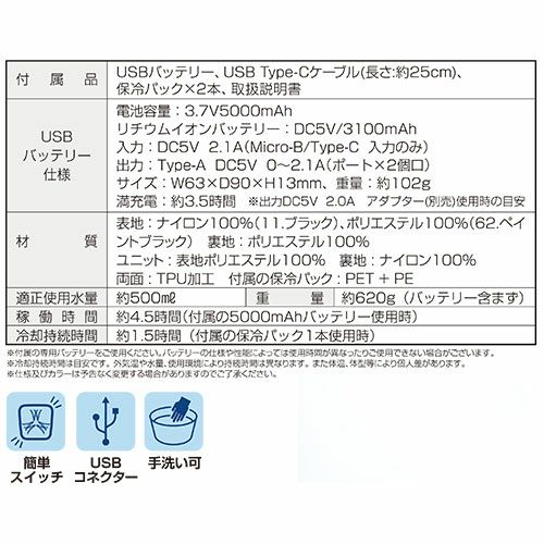 他の画像を見る 水冷服 水冷ベスト 水冷作業服 アタックベース ATACK BASE APEX WIN 水冷ベスト 2024年モデル 11130 冷却ベスト 冷却服 水冷着 水冷服 春夏 速冷 冷水循環 冷却ユニット 手洗い可 バッテリー付 熱中症対策 熱中症対策グッズ 暑さ対策 特別価格 ¥ 16,980 税込 脇部分も冷却する水冷循環ベストベストの前面、背面、衿元にプラスして脇部分にも冷却ユニットを搭載氷で冷やした冷水が流れ渡り瞬時に効果的に体を冷却コストメリットがある仕様でハイパフォーマンス間違いなし氷を入れ替えれば1日中冷たさが持続しEFウェアの使用できない現場でも使用可能な冷却ウェア ■冷水が循環するベスト首まで冷却!広範囲冷却ハイパワーモデル■独自の冷却ユニット使用ベストに内蔵されている冷却ユニットで冷水を循環させることで冷やしていく仕組みです。装着時の違和感もなく上半身を冷たく包み込んでくれます。■便利なUSBコネクター電源入力プラグにUSBを採用USB電源やモバイルバッテリーが使用できるので便利■ひと目でわかる電源スイッチ電源を入れると電源スイッチが青く光ります。ON/OFFがひと目で分かります。■さまざまなシーンに活躍暑い日の屋外作業や通勤、バイク、ゴルフ、釣りなどの熱中症対策に 詳細を見る お気に入りに登録する