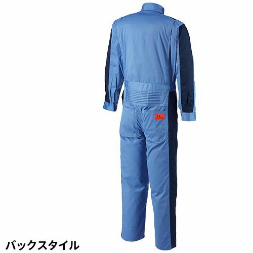 背中の屈伸性を高めたアコーディオンバックが特徴的 生地は帯電防止、軽撥水、横のびストレッチ素材です。センターは前立てを付け、胸ポケットはフラップ下に隠しファスナーを付けたプロ仕様の機能性ツナギです。