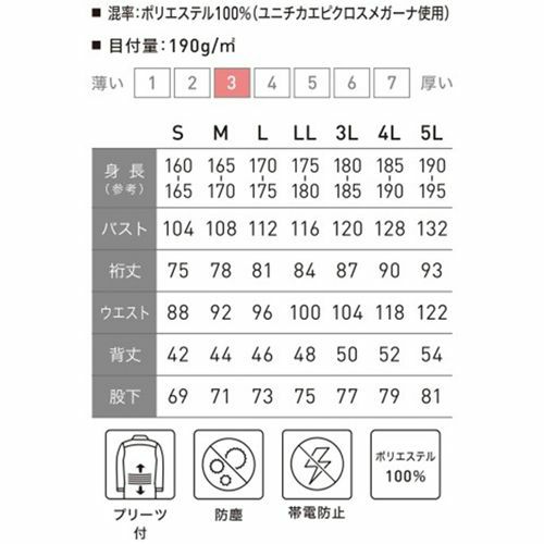デザインと機能を兼ね備えた9540シリーズの新定番つなぎ ストレッチ性のある変形ヘリンボン生地を使用し動きやすさと上質な風合いを実現 凹凸感のある織柄がやわらかな質感に仕上げています。 右胸のファスナーポケットや複数のマルチポケットで高い収納力を実現 作業からデイリー、ストリートまで幅広く活躍する一着です。