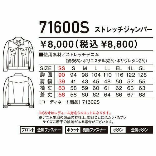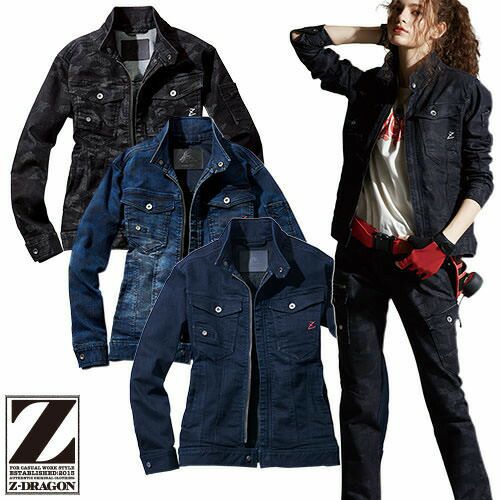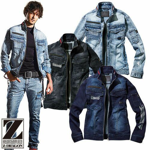 作業服 デニム 自重堂 Z-DRAGON ストレッチジャンパー 71600S 作業着 通年 秋冬 ストレッチ デニム カッコいい 女性対応 細身 スリム 上着 デニム作業服 デニム作業着 ブルゾン ジャケット ワークウェア 仕事 土木 工事 現場