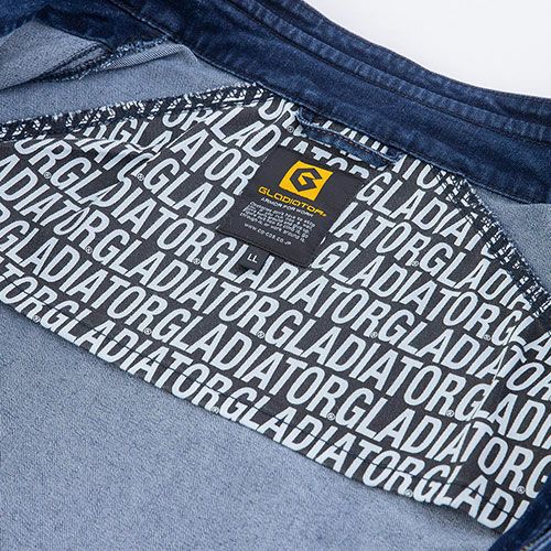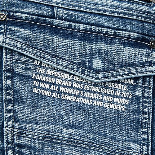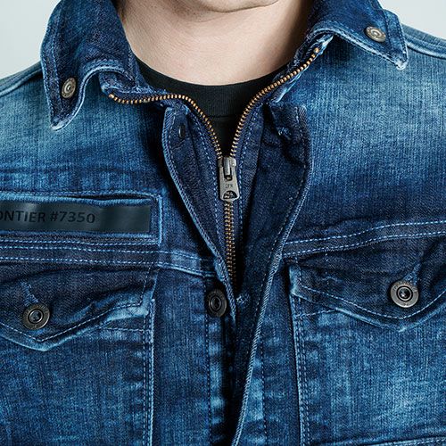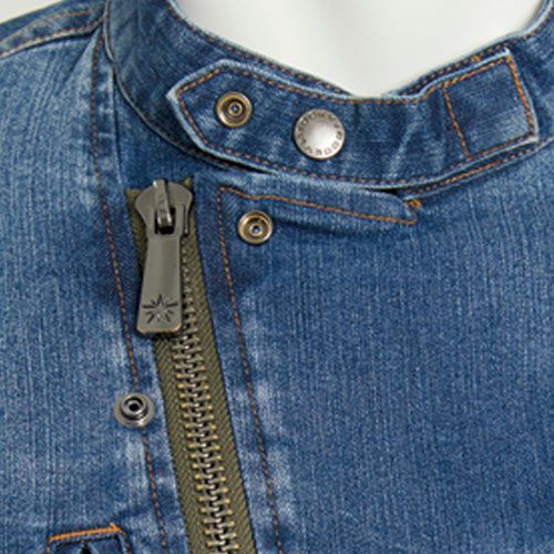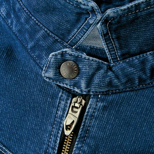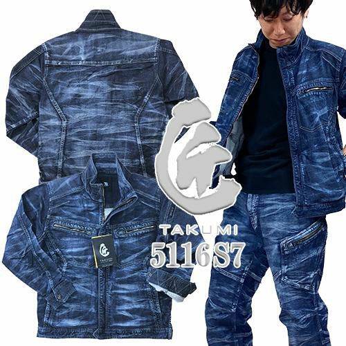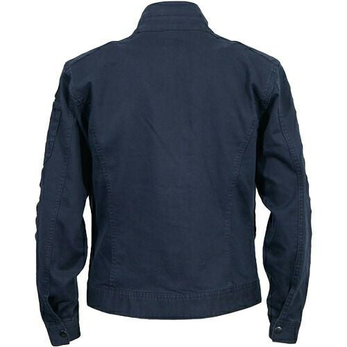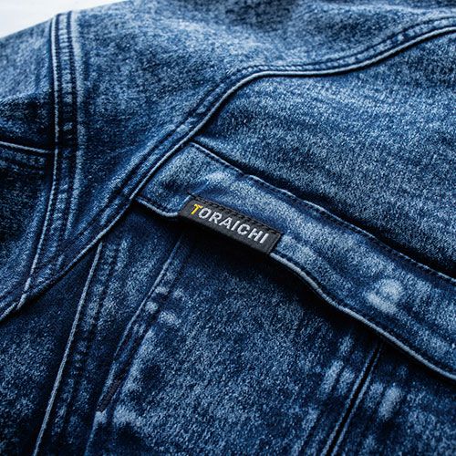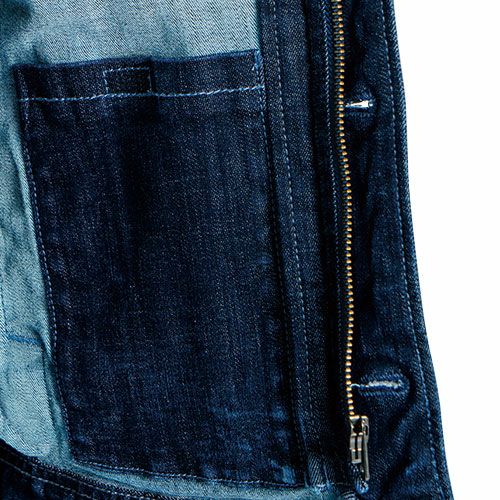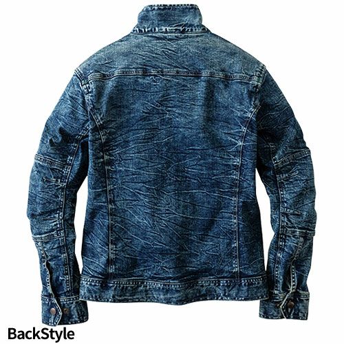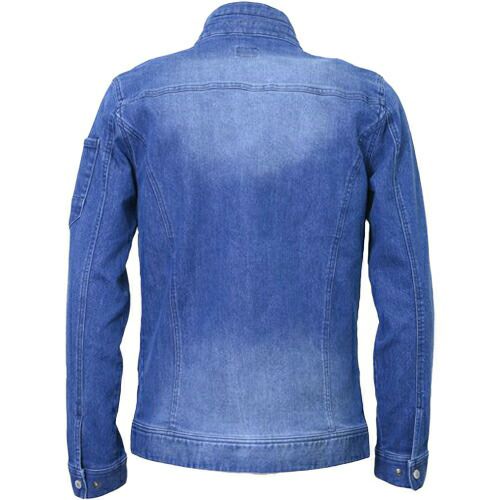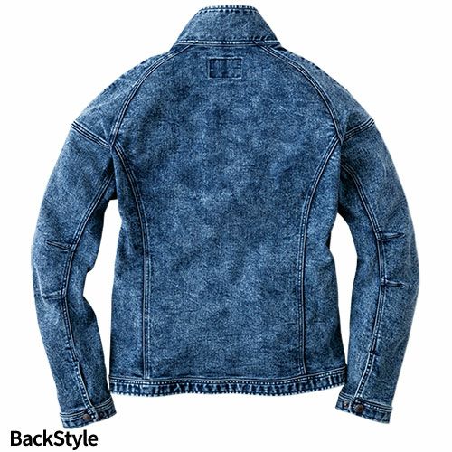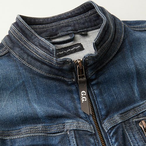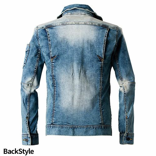 カジュアルとワイルドが一体化するストレッチデニム素材のライダース風ワークウェアワンウォッシュ+部分ブラストがアクセントになってよりワイルドな着こなしを可能に