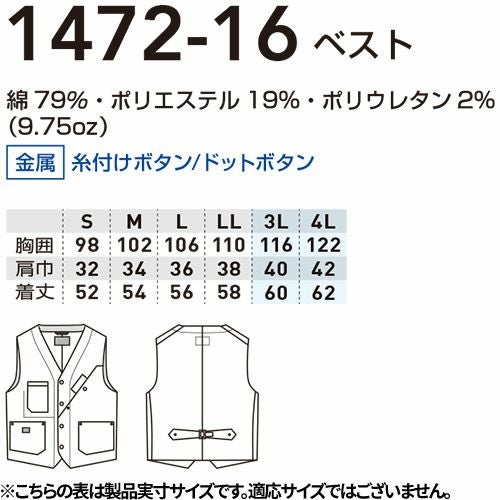 作業服 デニム 桑和 SOWA Dandy Dad ベスト 1472-16 作業着 通年 秋冬 アメリカンワークスタイル 製品洗い加工 渋い おしゃれ ダンディー カジュアル タウンユース カッコいい