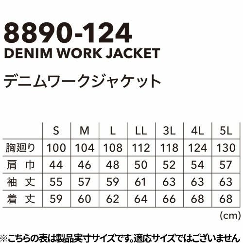 作業服 デニム 寅壱 TORA デニムワークジャケット 8890-124 作業着 通年 秋冬 カッコいい おしゃれ 人気 ストレッチ カジュアル タウンユース