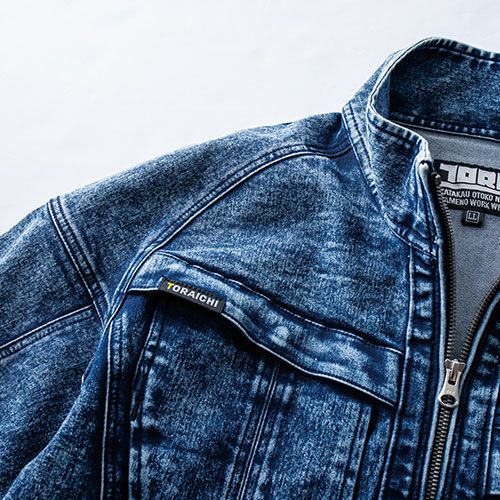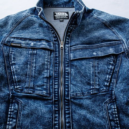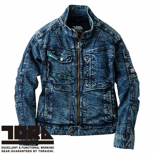作業服 デニム 寅壱 TORA デニム蛇腹ライダースジャケット 8930-554 作業着 通年 秋冬 カッコいい おしゃれ 人気 カジュアル タウンユース