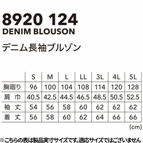 作業服 デニム 寅壱 TORA デニム長袖ブルゾン 8920-124 作業着 通年 秋冬 カッコいい おしゃれ 人気 カジュアル タウンユース