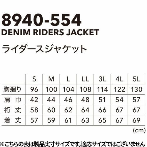 作業服 デニム 寅壱 TORA デニムライダースジャケット 8940-554 作業着 通年 秋冬 カッコいい おしゃれ 人気 カジュアル タウンユース
