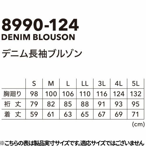 作業服 デニム 寅壱 TORA デニム長袖ブルゾン 8990-124 作業着 通年 秋冬 カッコいい おしゃれ 人気 ストレッチ カジュアル タウンユース