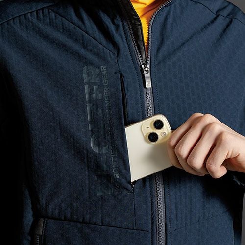 防風アウターを再解釈し誕生した新たなるバリューその保温性、その軽量感、ワーク史上類を見ない驚愕の進化に括目せよ! ・従来の動きにくく不快な防風ウェアと、軽量で暖かいもワークウェアに不向きなフリースウェア。この2大冬用アイテムの短所を見つめ直し長所を一つとした超進化系冬用アウターが誕生。・素材表面は滑らかな高密度フラット、裏面は暖かい3Dサーフェイス起毛をそれぞれ形成する二重織り構造。その裏側の起毛構造から空気層が発露し保温率約38%を計測。1枚物のウェアとしては非常に高い保温効果を発揮します。・素材表面の高密度な組織構造により風抜け感を軽減。1枚の素材ながらも通気度=2.0ccを誇る高い防風性と適度な透湿性を併せ持ち、従来の1枚物防風ウェアに比べ大幅にムレを軽減し快適な衣服内環境を実現します。・一般基準を凌ぐ(約2倍)引裂き強度や、高いピリング性能(5級)やスナッグ性能(4.5級)等ハードワークにも充分に対応する高堅牢性モデル。・非常にしなやかで軽量感の高い素材特性と、伸長率タテ約13%、ヨコ約23%を計測した全方向ストレッチ性能によりストレスのない動き易さを実現。・計算しつくしたデザインテープや同色系ラバープリント等を施し個性を主張し過ぎることなくデザイン性をアップ。企業ユニフォームとしても対応可能。・厳選されたオリジナルファスナーを各ポケットに使用し収納性アップ。細部にまで拘りを追求しています。