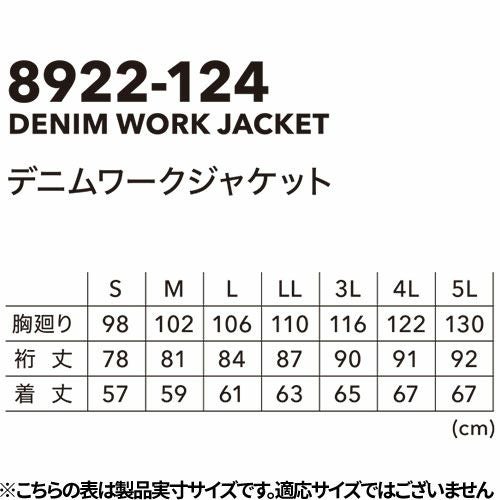 作業服 デニム 寅壱 TORA デニムワークジャケット 8922-124 作業着 通年 秋冬 カッコいい おしゃれ 人気 ストレッチ カジュアル タウンユース
