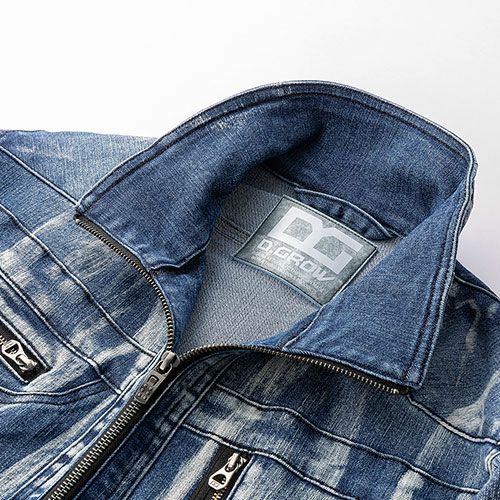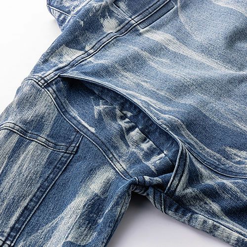 インディゴブリーチはインディゴブルーのストレッチ素材を独自のブリーチ加工を施した趣のある風合いと個性が印象的