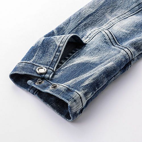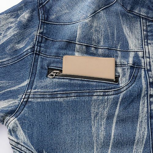 インディゴはインディゴブルーのストレッチデニム素材を採用し個性際立つパッチワーク加工と皺加工でよりファッショナブルに