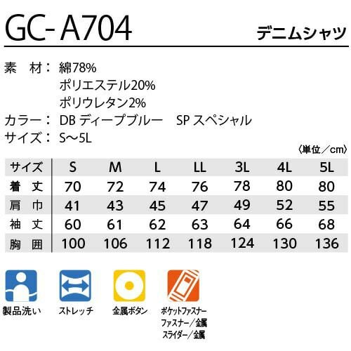 他の画像を見る 作業服 デニム ストレッチ 長袖シャツ タカヤ商事 TAKAYA GRANCISCO グランシスコ デニムシャツ GC-A704 作業着 通年 秋冬 上着 人気商品 流行り 特別価格 ¥ 5,049 税込 〜 特別価格 ¥ 税込 数々のトレンドを生み出してきたジーンズメーカーが手掛けた渾身のデニムワークウェア!その感性や加工感は他を圧倒する存在感!! 1.オールシーズン対応2.ストレスフリーな驚異の高伸縮ストレッチデニムを使用3.トレンドのシャツスタイルを昇華させるスマートシルエット 詳細を見る お気に入りに登録する