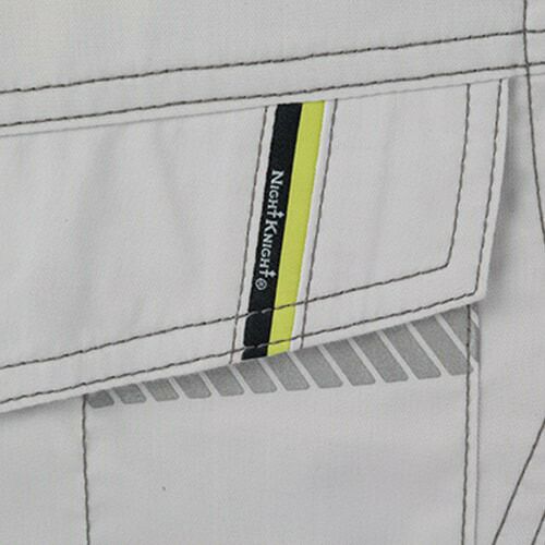 1.要所に配置した3M Scotchlite反射材で周囲からの視認性を確保し夜間作業や倉庫内作業等での車両事故リスクを軽減