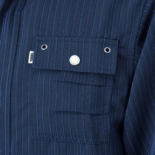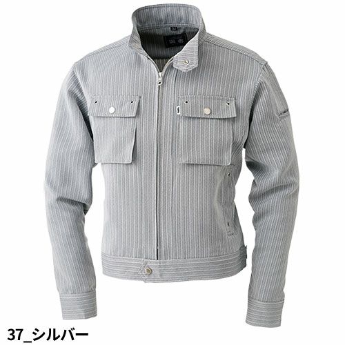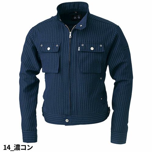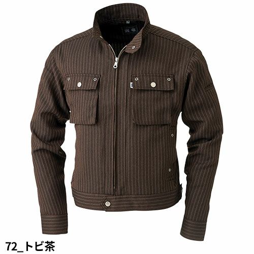 メタルボタンとアイレット使いの胸ポケット、フロント全開ファスナー、もちろん衿はスタンドカラー