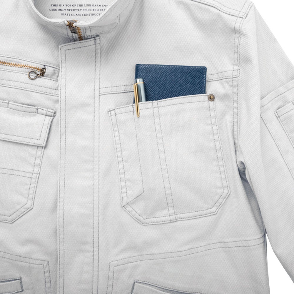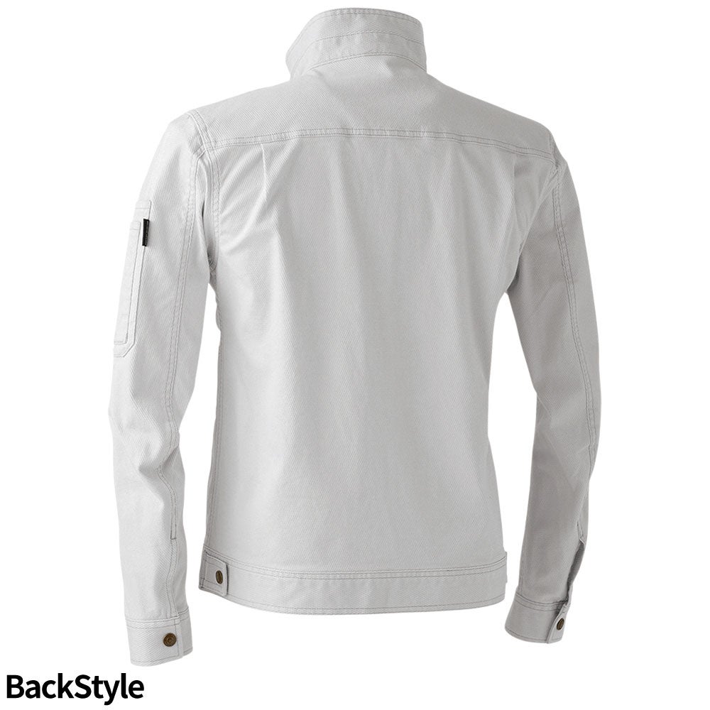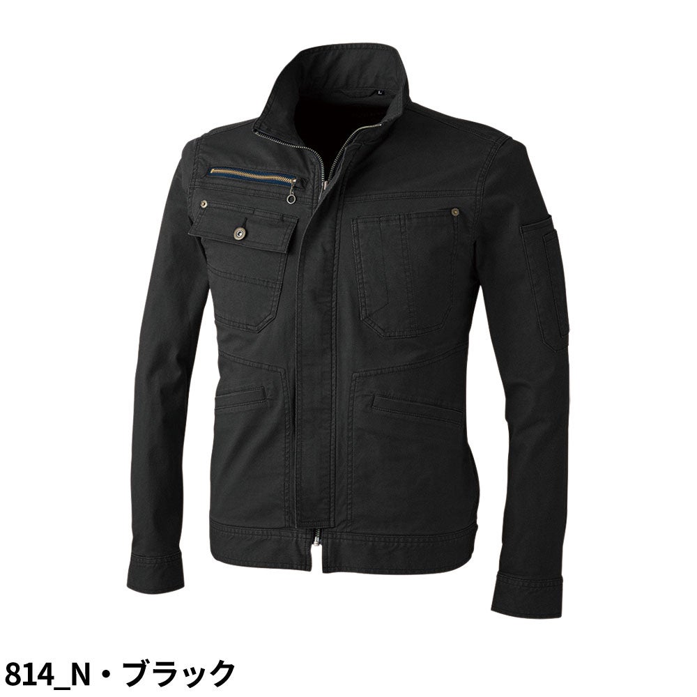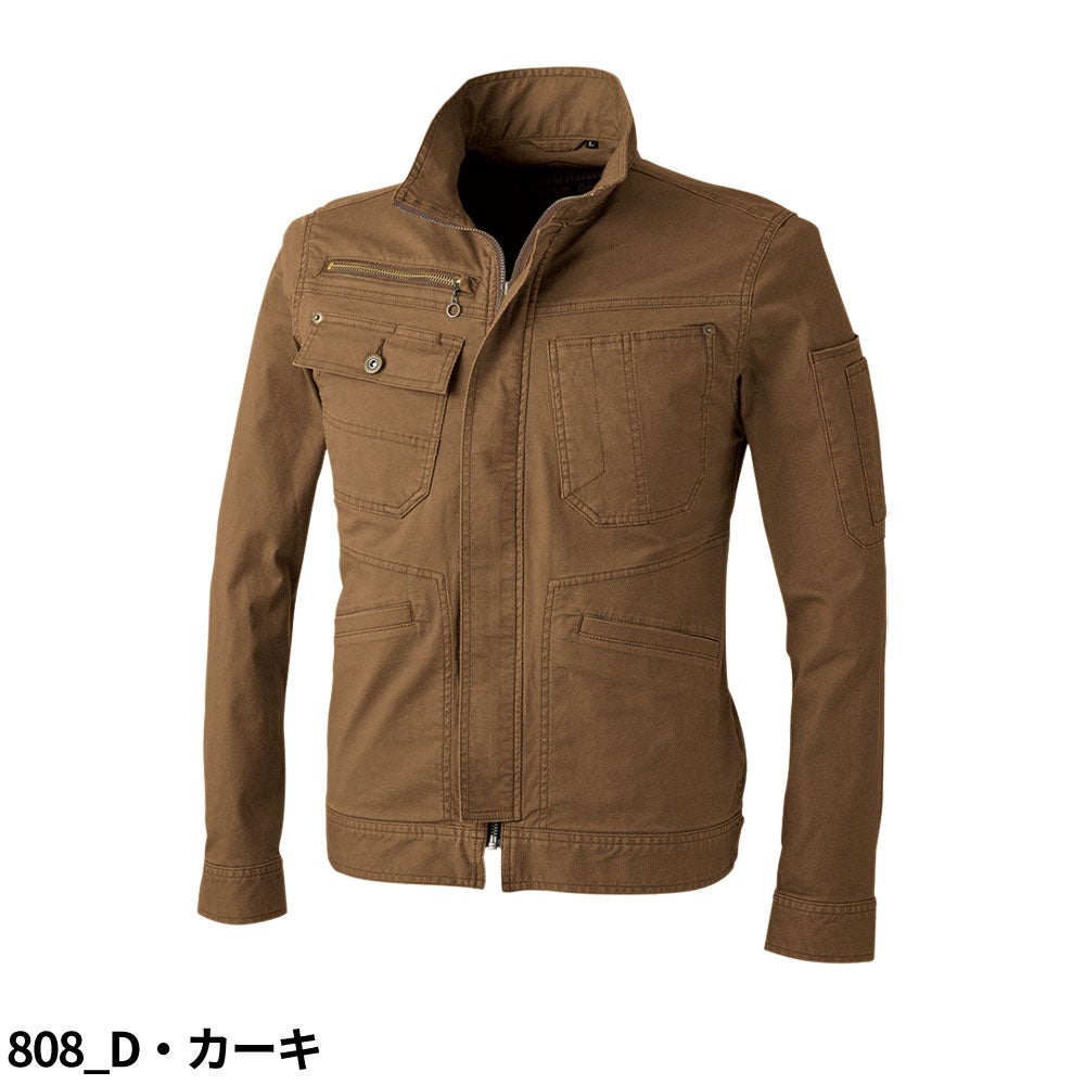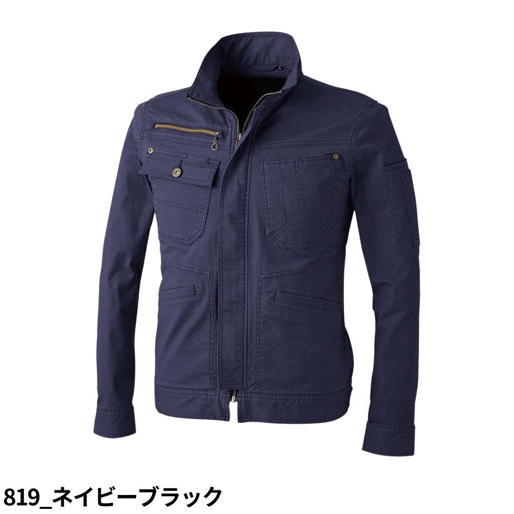 120%スリムストレッチ×バイオウォッシュの厚手長袖ジャケット。秋冬の現場でも快適なスタイリッシュモデル。