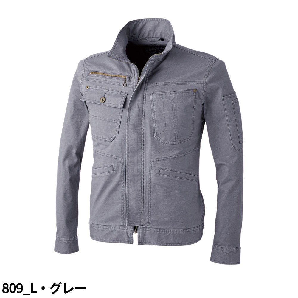 厚手素材でも120%ストレッチで動きやすい。バイオウォッシュ仕上げの秋冬対応ドビー長袖ジャケット。