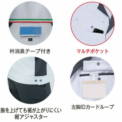マルチ機能を搭載した多機能作業服。バイカラーデザインで上下別色のコーディネートもできます。