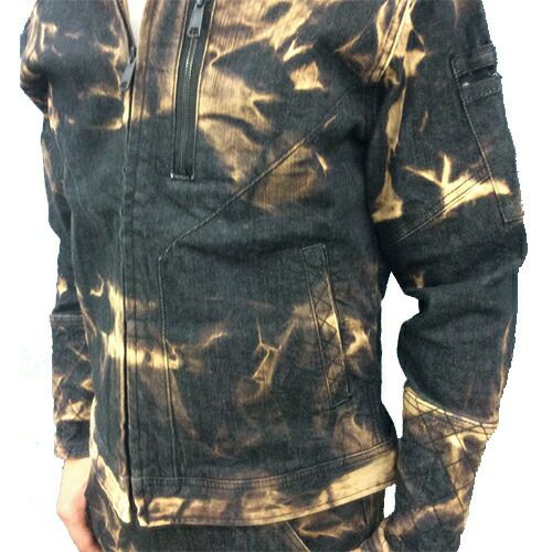ユーズド感・カジュアル感にあふれるアイテムケミカルウォッシュ加工が特徴の柄!背中上部・袖にステッチを入れ、補強しつつ、オシャレ度UP!
