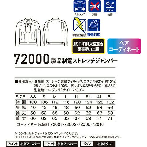 作業服 ブルゾン 自重堂 Z-DRAGON 製品制電ストレッチジャンパー 72000 作業着 通年 秋冬作業着 作業服 ブルゾン 上着 おしゃれ かっこいい 人気 企業 法人 ワーク 作業 工場 外作業 ワークユニフォーム 仕事 土木 工事