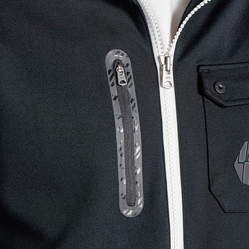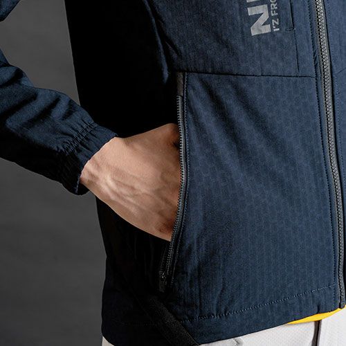 AWシーズンの快適性を愚直に追求したどり着いたひとつのかたちそれは断寒保温×ストレッチ。I’Zハイパフォーマンスプロモデルその極上の着心地を体感せよ! ・機能原料エアロゲルを採用し断寒性能と遠赤外線保温効果を両立したAWシーズン専用ワークウェア。・高い表面摩擦強度を誇るポリエステル天竺素材の裏側に機能原料素材をボンディング。断寒性能を発揮しつつ、保温率26.8%を計測した遠赤外線効果で適度な保温性を実現。冷たくなく暖かくなり過ぎない快適な衣服内環境を実現します。・ボンディング素材の特性から通気感とムレをバランス良く軽減。適度な全方向ストレッチ性能(伸長率タテ約5%・ヨコ約13%、伸長回復率約88%)も有しており、従来の冬物防風ウェアに比べ、非常に快適な1着に仕上がっております。・ニット素材でありながら破裂強さ約1200kPa、抗ピリング性能4.5~5級、抗スナッグ性能5級を誇る非常に優れた堅牢性を有しています。・ジャケット袖ポケットやジョガーパンツカーゴポケットには強度の強い別布布帛生地を採用し、強度とデザイン性アップを実現。・フードや前身上部に防風性を兼ね備えた布帛素材を使用。このハイブリット構造により機能性と高級感をアップさせます。・さりげなく、且つ効果的にデザイン性を高めるレタリングプリントを施し、個人ユーザー様、企業ユニフォーム案件等、様々なシーンをスタイリッシュに演出します。・ミリタリールックスと高級感を高めるマットな質感のオリジナルビスロンファスナーを効果的に使用する等、細部にまで拘りを追求しています。