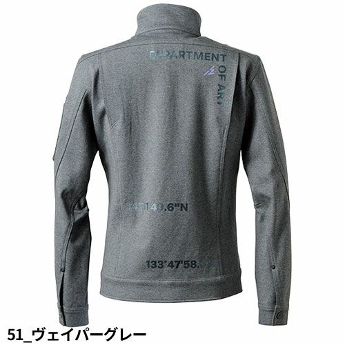 防風アウターを再解釈し誕生した新たなるバリューその保温性、その軽量感、ワーク史上類を見ない驚愕の進化に括目せよ! ・従来の動きにくく不快な防風ウェアと、軽量で暖かいもワークウェアに不向きなフリースウェア。この2大冬用アイテムの短所を見つめ直し長所を一つとした超進化系冬用アウターが誕生。・素材表面は滑らかな高密度フラット、裏面は暖かい3Dサーフェイス起毛をそれぞれ形成する二重織り構造。その裏側の起毛構造から空気層が発露し保温率約38%を計測。1枚物のウェアとしては非常に高い保温効果を発揮します。・素材表面の高密度な組織構造により風抜け感を軽減。1枚の素材ながらも通気度=2.0ccを誇る高い防風性と適度な透湿性を併せ持ち、従来の1枚物防風ウェアに比べ大幅にムレを軽減し快適な衣服内環境を実現します。・一般基準を凌ぐ(約2倍)引裂き強度や、高いピリング性能(5級)やスナッグ性能(4.5級)等ハードワークにも充分に対応する高堅牢性モデル。・非常にしなやかで軽量感の高い素材特性と、伸長率タテ約13%、ヨコ約23%を計測した全方向ストレッチ性能によりストレスのない動き易さを実現。・計算しつくしたデザインテープや同色系ラバープリント等を施し個性を主張し過ぎることなくデザイン性をアップ。企業ユニフォームとしても対応可能。・厳選されたオリジナルファスナーを各ポケットに使用し収納性アップ。細部にまで拘りを追求しています。